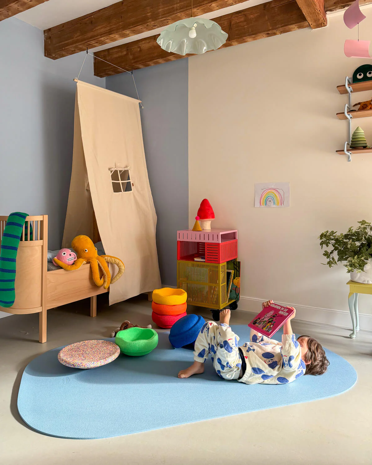 Whether it’s first crawling attempts, dynamic play and movement, intense workouts, or relaxed yoga sessions — the Mat transforms any floor into a favorite place for both little ones and grown-ups. The two different surface textures provide secure grip and support motor development, while the generous surface invites unrestricted movement — alone or together.