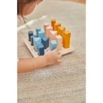 PlanToys Geometric Peg Board ชุดประกอบด้วยหมุดทรงเรขาคณิต 16 ชิ้น ซึ่งมีขนาด รูปร่าง และสีที่แตกต่างกัน 4 แบบ ผู้เล่นสามารถจัดเรียง นับ และวางซ้อนหมุดเหล่านี้บนฐาน PlanWood ที่แข็งแรง เพื่อสร้างประสบการณ์การเล่นที่มีคุณค่าทางการศึกษา