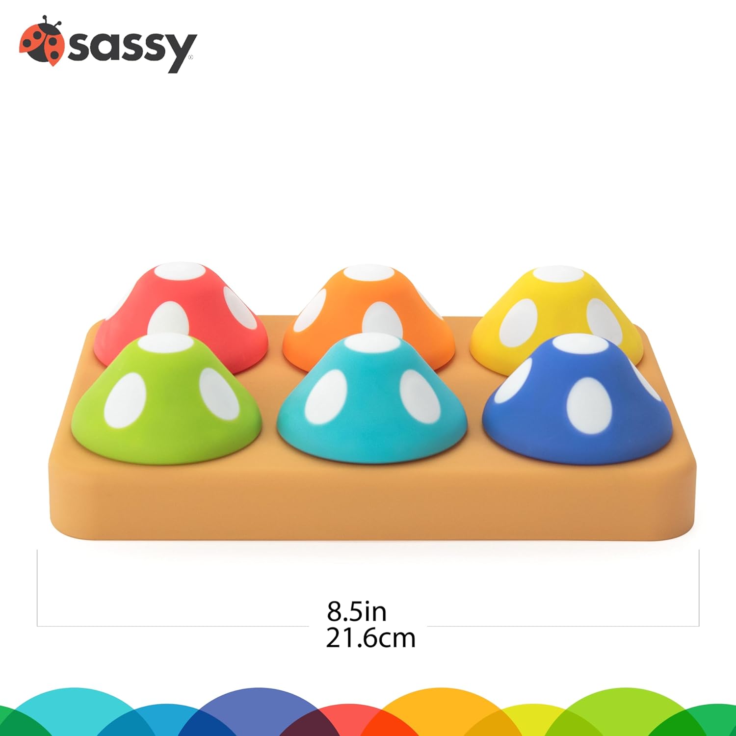 ภายในชุดประกอบด้วยเห็ดน้อย 6 ดอก 6 สี พร้อมใบหน้าสื่ออารมณ์หลากหลาย วางลงบนถาดจับคู่สี ฝึกการจดจำและเรียงลำดับไปพร้อมๆ กับเสริมพัฒนาการด้านภาษาและอารมณ์ เห็ดแต่ละดอกยังมีเสียงกรุ๊งกริ๊งเฉพาะตัว สร้างความเพลิดเพลินให้เด็กทุกวัย
